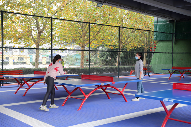 步入其中,自東向西可以看到公園被分為乒乓球區(qū)、老人健身區(qū)、兒童娛樂區(qū)、籃球區(qū)和羽毛球區(qū)五大區(qū)域。其中,老人健身區(qū)設(shè)置了太空漫步機、平步機、跑步機等多種健身器材,可滿足老人多樣化健身需求;兒童娛樂區(qū)設(shè)置了滑梯、秋千、蹦床、迷宮、轉(zhuǎn)盤、蹺蹺板等多種設(shè)施,可謂是兒童的娛樂小天地。公園內(nèi)造形優(yōu)美的運動雕塑,給公園增添了濃郁的文化氣息;塑膠跑道、運動地板等均采用綠色環(huán)保材料,而四周設(shè)置的花壇,更是實現(xiàn)了人車分流,讓群眾安心又放心,實現(xiàn)運動娛樂零負擔。