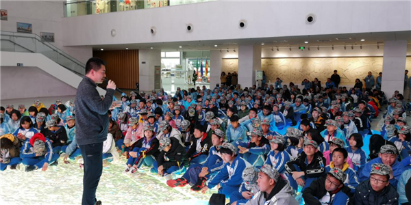 上課地點位于奧帆博物館一樓中廳,大家在地屏上席地而坐,共同參與課堂內(nèi)容及互動。