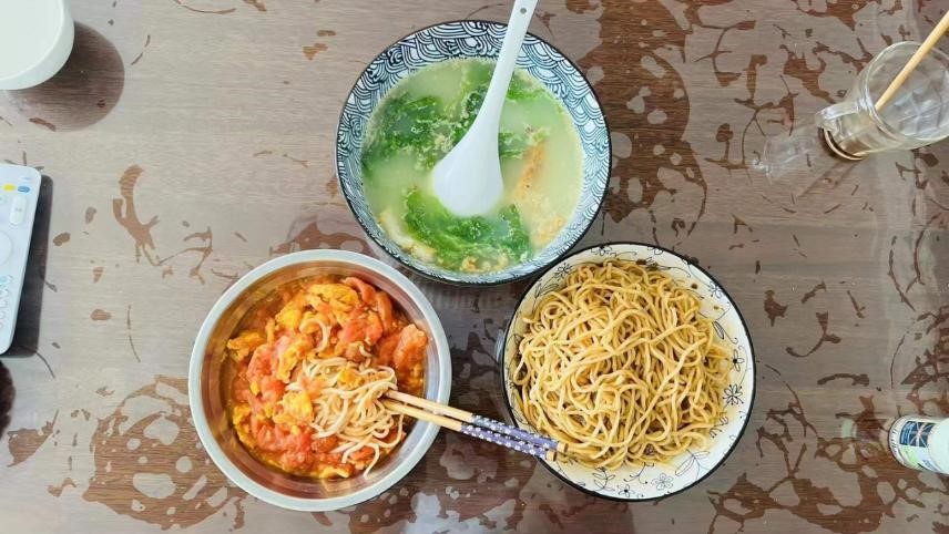 舜山府項(xiàng)目因疫情原因緊急封控,但業(yè)主呂先生一家人都在外工作,導(dǎo)致不會(huì)做飯的孩子獨(dú)自在家隔離。物業(yè)管家劉曉赟了解情況后,去附近超市購(gòu)買蔬果等物品來到業(yè)主家中,得到小業(yè)主同意后幫其做飯。因?yàn)榱私獾胶⒆犹羰?,管家劉曉赟為了滿足孩子的口味,專門為孩子做了兩種口味的熱湯面。