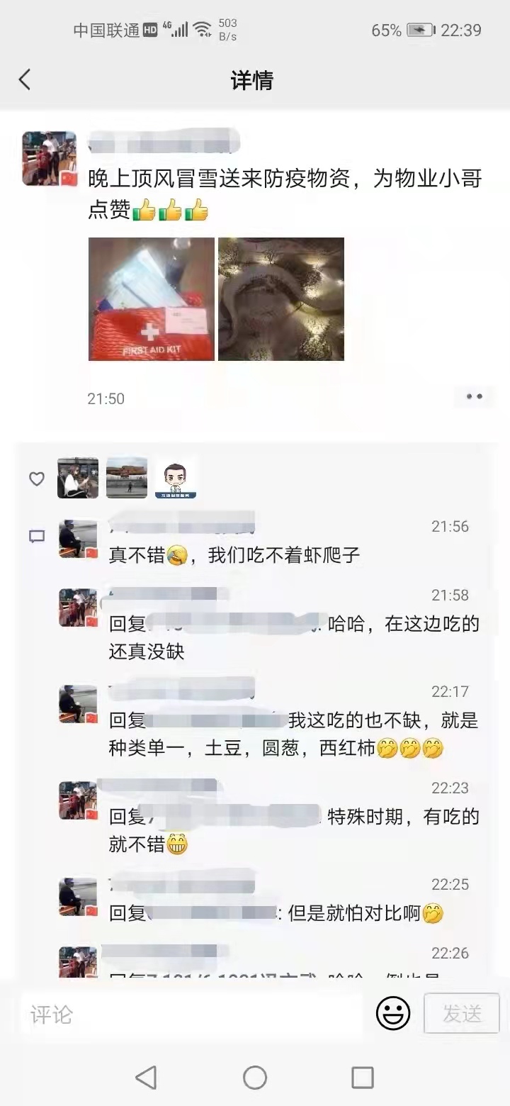 用心抗疫、用情服務(wù);戰(zhàn)役后方,默默無聞的「魯大壯」們竭盡所能用溫暖傳遞著愛心和正能量。一碗普通的熱湯面,不僅溫暖了業(yè)主的心,更化解了業(yè)主前期對(duì)物業(yè)的小誤會(huì)。