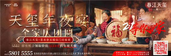 *參與青島龍湖微信公眾號“業(yè)主專屬|(zhì)龍湖億聯(lián)·春江天璽×喜來登五福臨門迎春宴 ”文末互動評論且獲點(diǎn)贊200人以上排名前三位的業(yè)主,即有機(jī)會獲得五福臨門迎春宴一桌哦!活動截止于大年二十六晚18:00,搶占一年好運(yùn),就在此時此刻*