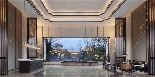 同時,天鉅打造與星級酒店并肩的入戶大堂,為業(yè)主營造“出入皆禮遇”的歸家儀式感,選材上精挑細選,精研匠心,既保留石材的原生肌理,又賦予其活靈活現(xiàn)的姿態(tài),結合人體對環(huán)境感官的層次變化,筑造膠州大人物卓絕歸家體驗,