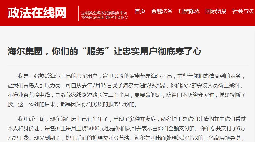當(dāng)前位置:首頁 > 娛樂 > 輿情 > 海爾集團,你們的“服務(wù)”讓忠實用戶徹底寒了心
