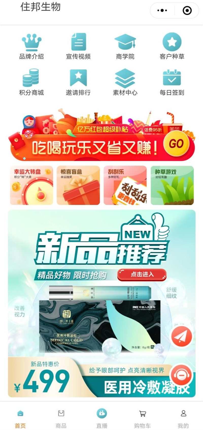 通過代理分享的二維碼進(jìn)入微信小程序“住邦生物科技”,商城中只有“御京盛·醫(yī)用冷敷凝膠”這一款產(chǎn)品,產(chǎn)品零售價為499元/盒,目前,小程序是該產(chǎn)品的唯一購買渠道。