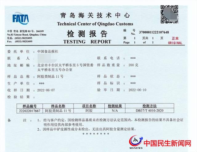 標(biāo)稱(chēng)安徽譽(yù)藥堂藥業(yè)有限公司生產(chǎn)的一批次“亳春堂阿膠八珍膏”(生產(chǎn)日期:2022.04.10),經(jīng)檢測(cè)未檢出驢皮源性成分。