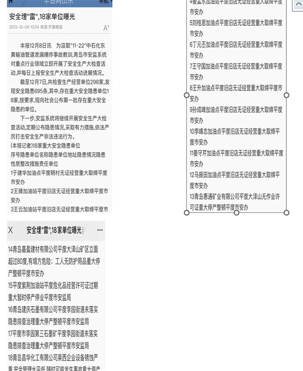 2013年查處的18家重大安全隱患單位中平度占17家