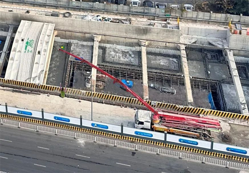 合肥路站為地下兩層明挖車站,總長474米(含物業(yè)配線),基坑深21.6米至24.3米,采用明挖順作法(局部蓋挖法)施工。目前合肥路站底板、負二層側墻、中板已全部施工完成,負一層側墻共46板,累計完成42板;頂板共計23板,累計完成17板。
