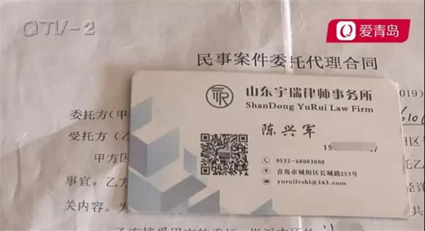 王先生給劉律師打去電話確認此事,但話還沒說完,劉律師就掛斷了電話,隨后記者陪同王先生來到了山東宇瑞律師事務所,由于正值節(jié)假日,這里沒人上班。記者通過名片上的信息給陳興軍打了電話。