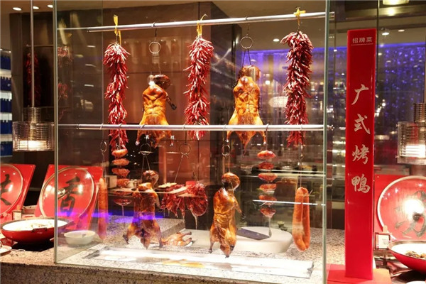 路及燒臘檔口,肉更是食客念念不忘的那一口兒!廣受好評的廣式烤鴨、叉燒肉和秘制烤翅依然是鐘愛的味道,脆皮燒鵝,外酥里嫩,片片擺好盤,等您來取!