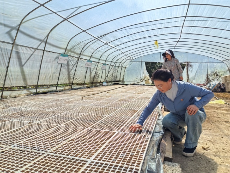 圖:崔廷俊查看辣椒育苗