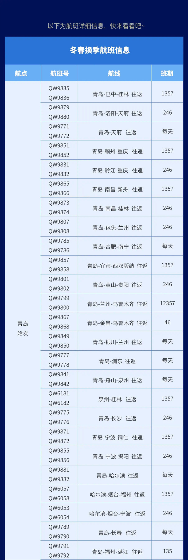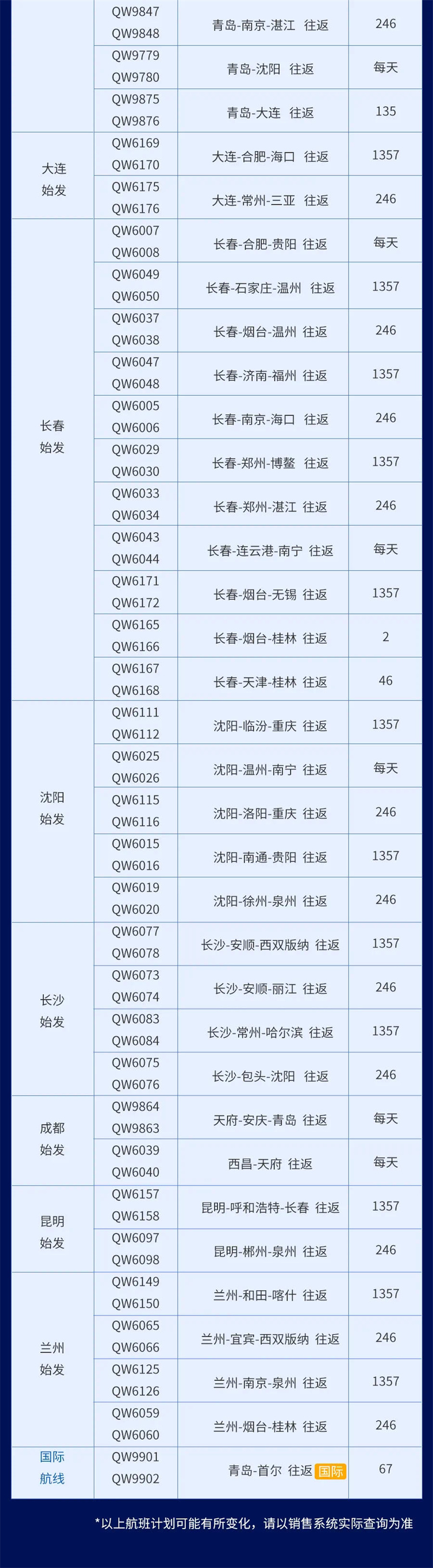 > 青島航空2021冬春新航季