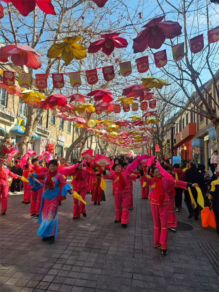 紅燈高掛映古街,秧歌歡騰鬧新春。正月初一,2026年青島蘿卜·元宵·糖球會在市北區(qū)大鮑島文化休閑街區(qū)盛大啟幕。百年里院街巷被紅黃相間的新春裝飾裝點得喜氣洋洋,民俗巡游隊伍身著艷紅服飾踏街起舞,中山路地鐵站口人頭攢動、客流如織,老字號糖球攤位前排起長隊,上午11時即迎來客流高峰,首日便迎來開門紅,為市北新春文旅市場點燃“第一把火”。
